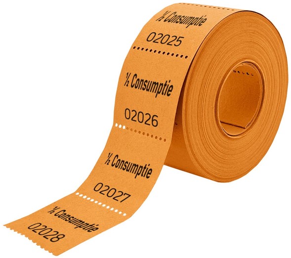 Kleine halve consumptiebonnen zijn handig in het gebruik, ook in combinatie met de grote hele consumptiebon op rol.